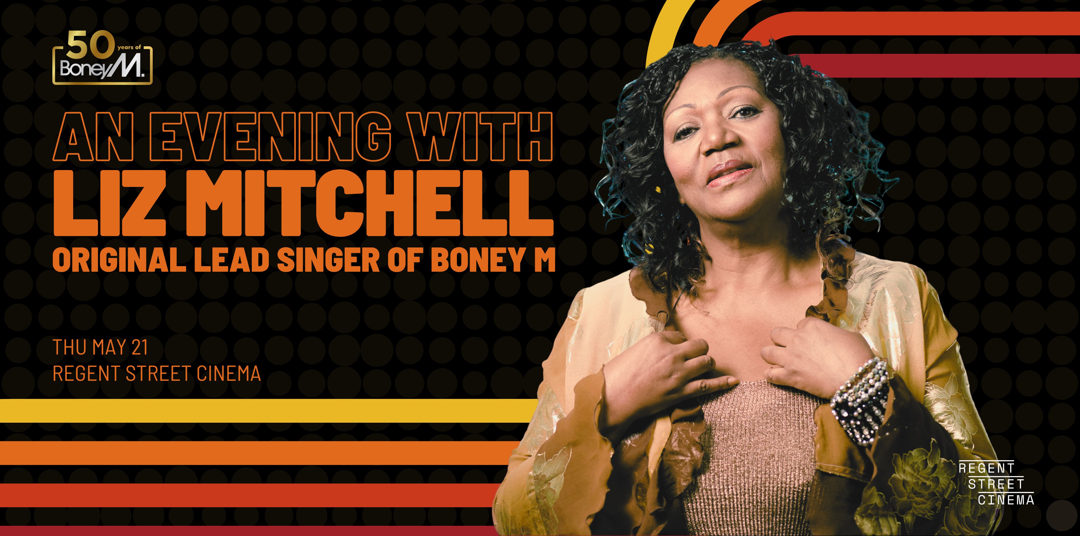 On the 21st of May, the Regent Street Cinema will host an interview with Liz to hear her amazing story of life in the music industry, how she is continuing to entertain audiences with her unique singing voice and her charity work, including her connection with the Windrush community. The interview will be preceded by a short film featuring the music videos of Boney M. Liz will be talking with Professor Mykaell Riley from the University of Westminster and founder member of the British roots Reggae band Steel Pulse. Mykaell was also the Music Director for the BBC TV series Boarders generating 35 IMDB credits for UoW students.PT1H30MN/A2026-05-21An Evening with Boney M’s Liz Mitchell"An Evening with Boney M’s Liz Mitchell"